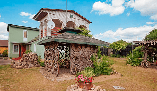 Белорусский колорит поддерживает и эксклюзивная беседка из старинных колес, а также могучая дубовая беседка, которая с легкостью вместит большую компанию. За столом сможет